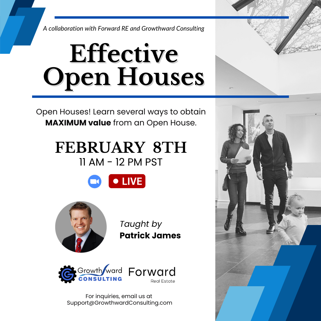 Join Patrick James from Growthward Consulting on Wed, February 11th for and in-depth training on how to ace your open houses and land clients every time.