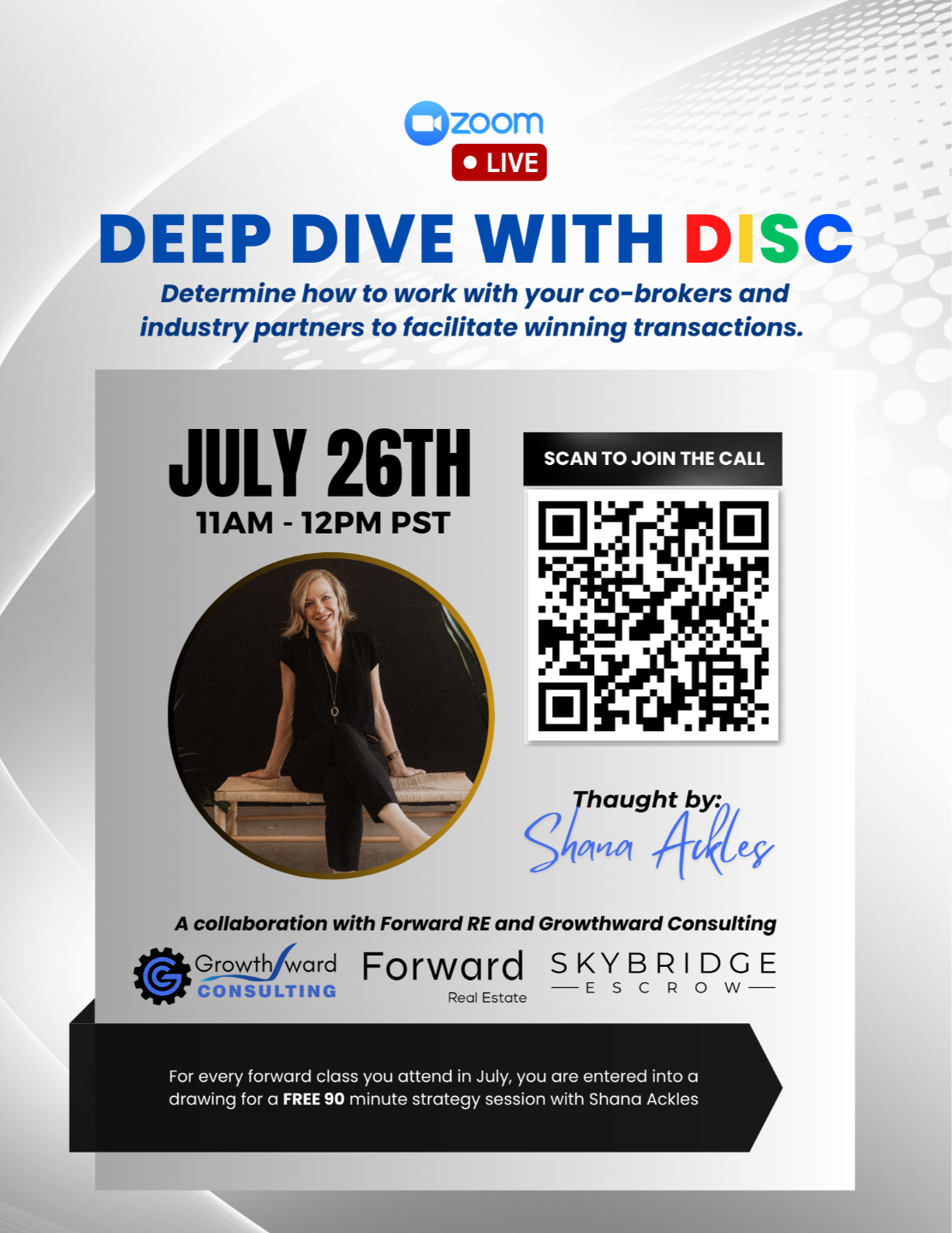 Join Shana Ackles, VP of Growthward Consulting for an Exclusive live event "Deep Dive with DISC" on Wed, July 26th at 11AM - 12PM PT.