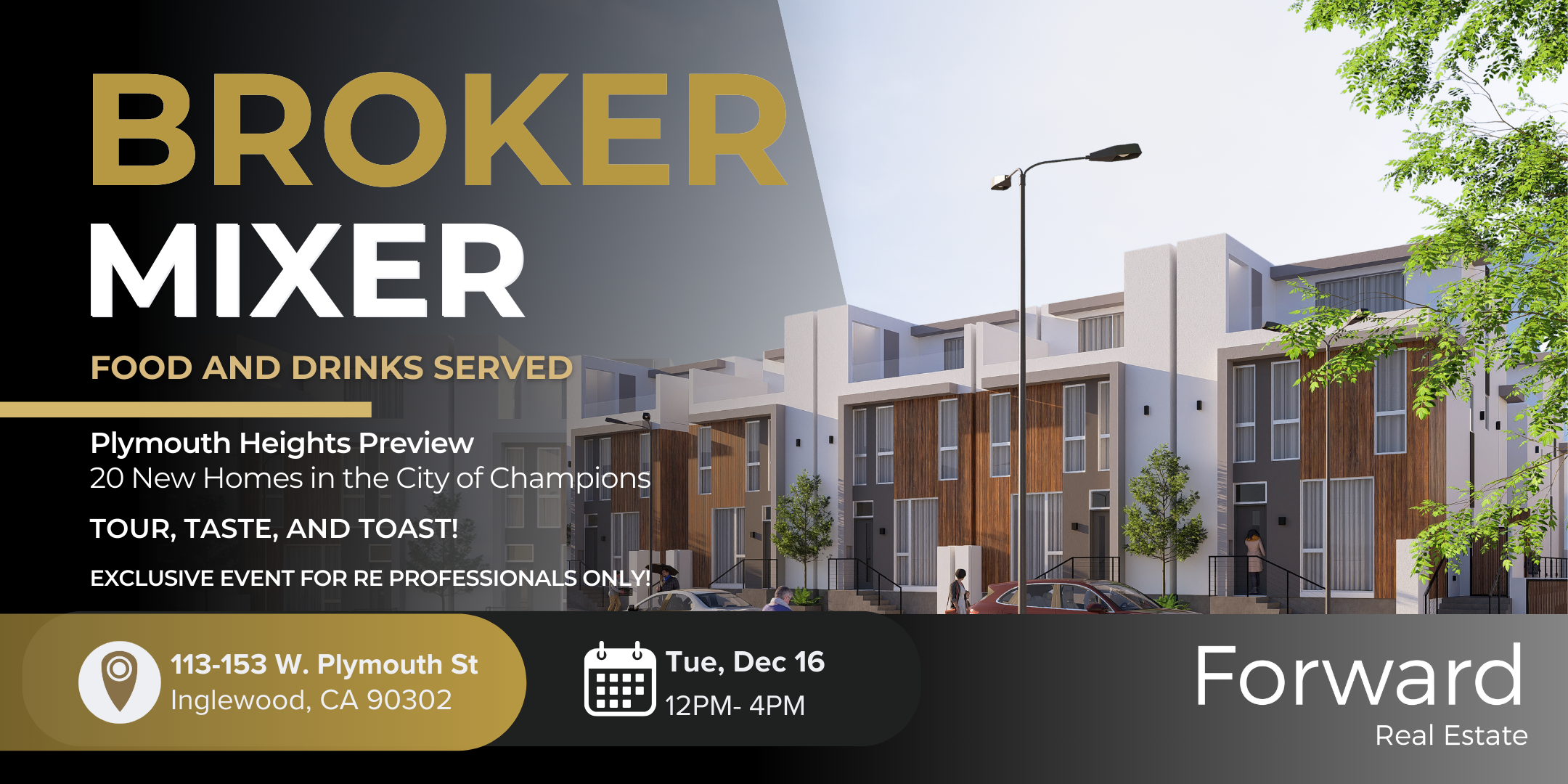 An exclusive broker-only mixer showcasing Plymouth Heights, a new residential community in Inglewood. Enjoy a property preview, networking, and refreshments while exploring 20 newly built homes.