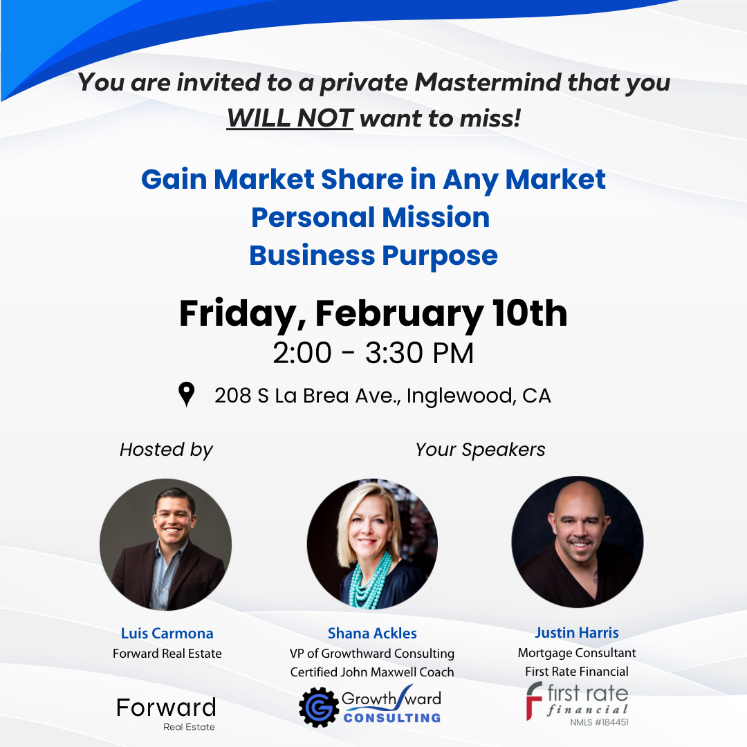 Join Shana Ackles, VP of Growthward Consulting for an exclusive mastermind event on Friday, February 10th at 2pm - 3:30 PM.