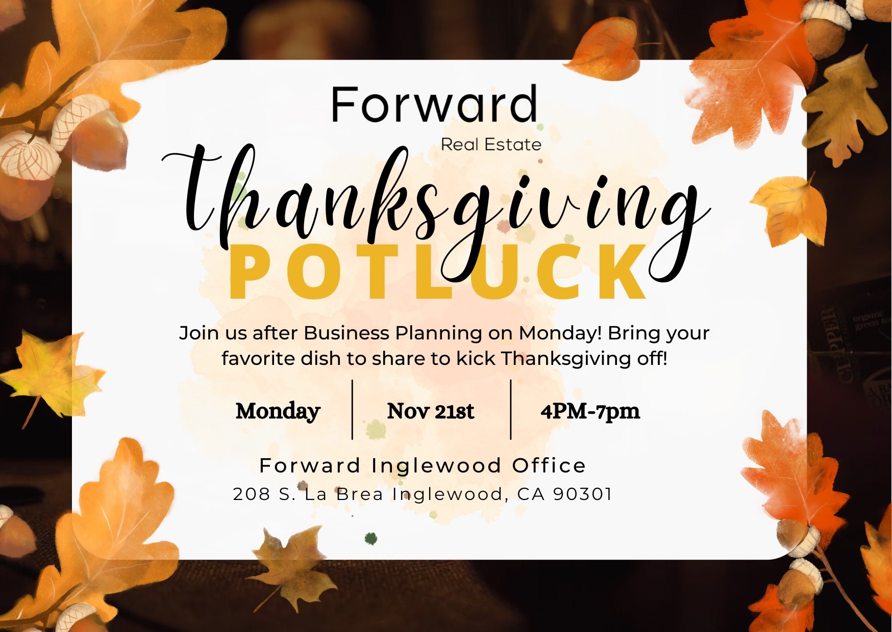 Come celebrate Thanksgiving Potluck + Charity after Business Planning event on Monday.