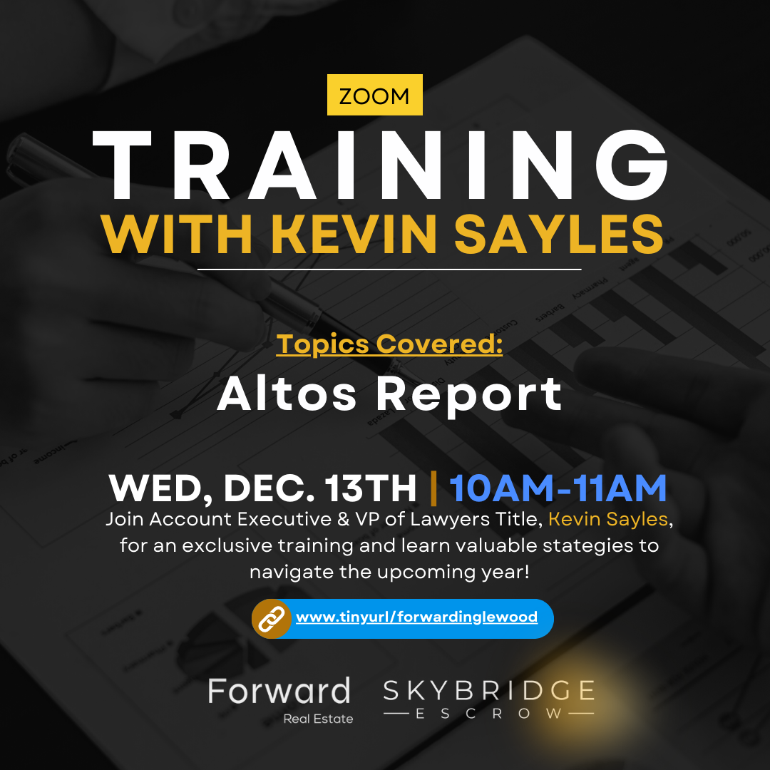 Join the exclusive Training with Kevin Sayles, VP of Lawyers Title on Wed, Dec. 13th 10AM-11AM.