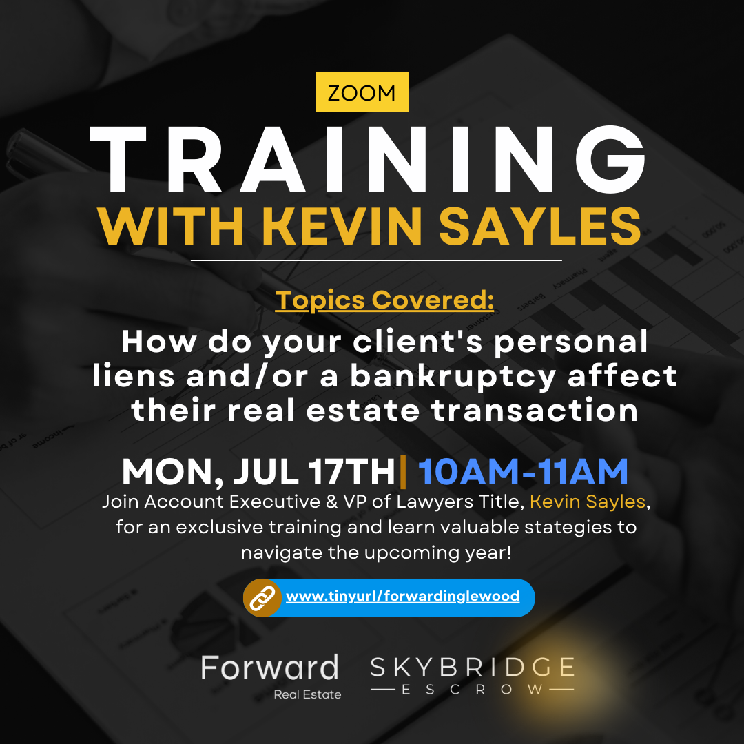 Join the exclusive Training with Kevin Sayles, VP of Lawyers Title on Mon, July 17th 10AM-11AM.