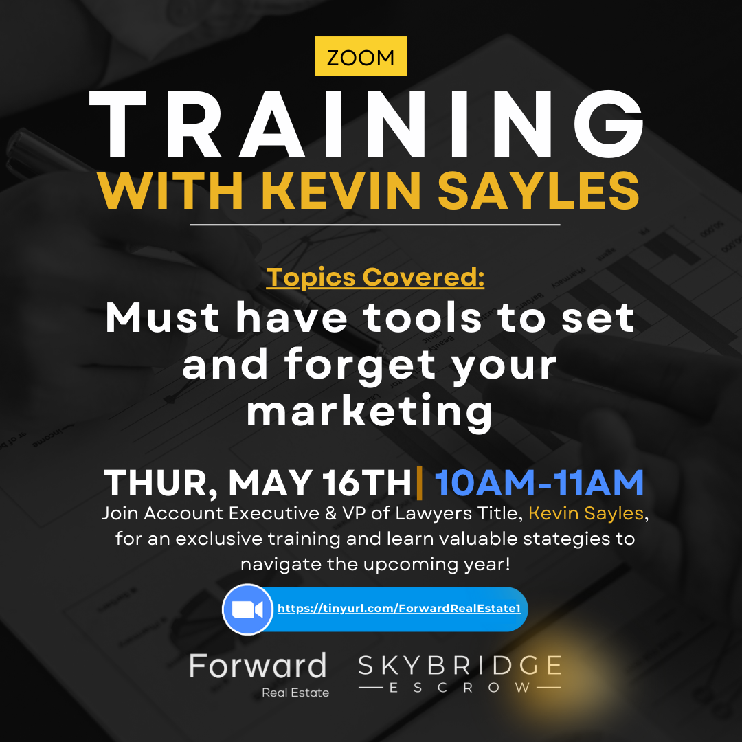 Join the exclusive Training with Kevin Sayles, VP of Lawyers Title on Thur, May 16th 10AM-11AM.